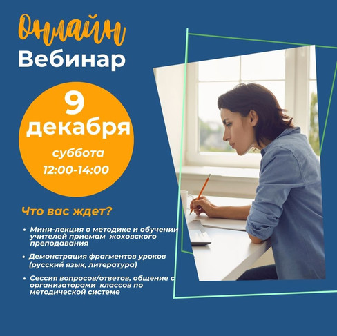 🗓️ 9 декабря присоединяйтесь онлайн-семинару по методической системе, в котором примут участие организаторы жоховских классов и педагоги-практики. Это возможность посмотреть фрагменты уроков, понять, как обучаются учителя, что дает им методика и задать все интересующие вопросы.